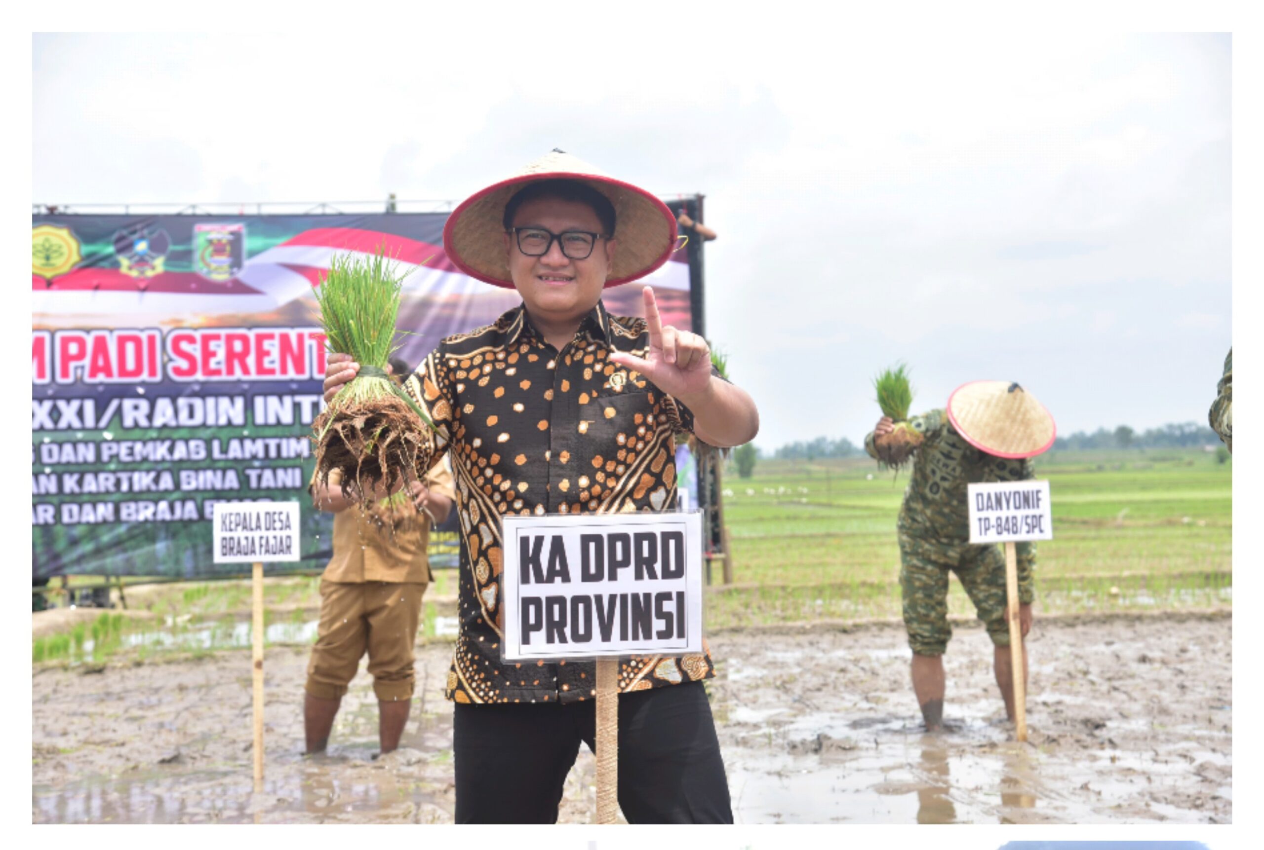 Akbar.News — Ketua DPRD Provinsi Lampung, A. Giri Akbar, S.E., M.B.A., menghadiri kegiatan Tanam Padi Bersama Forum Koordinasi Pimpinan Daerah (Forkopimda) yang dilaksanakan pada Selasa, 20 Januari 2026, di Desa Braja Fajar, Kecamatan Way Jepara, Kabupaten Lampung Timur, wilayah teritorial Kodim 0429/Lampung Timur.