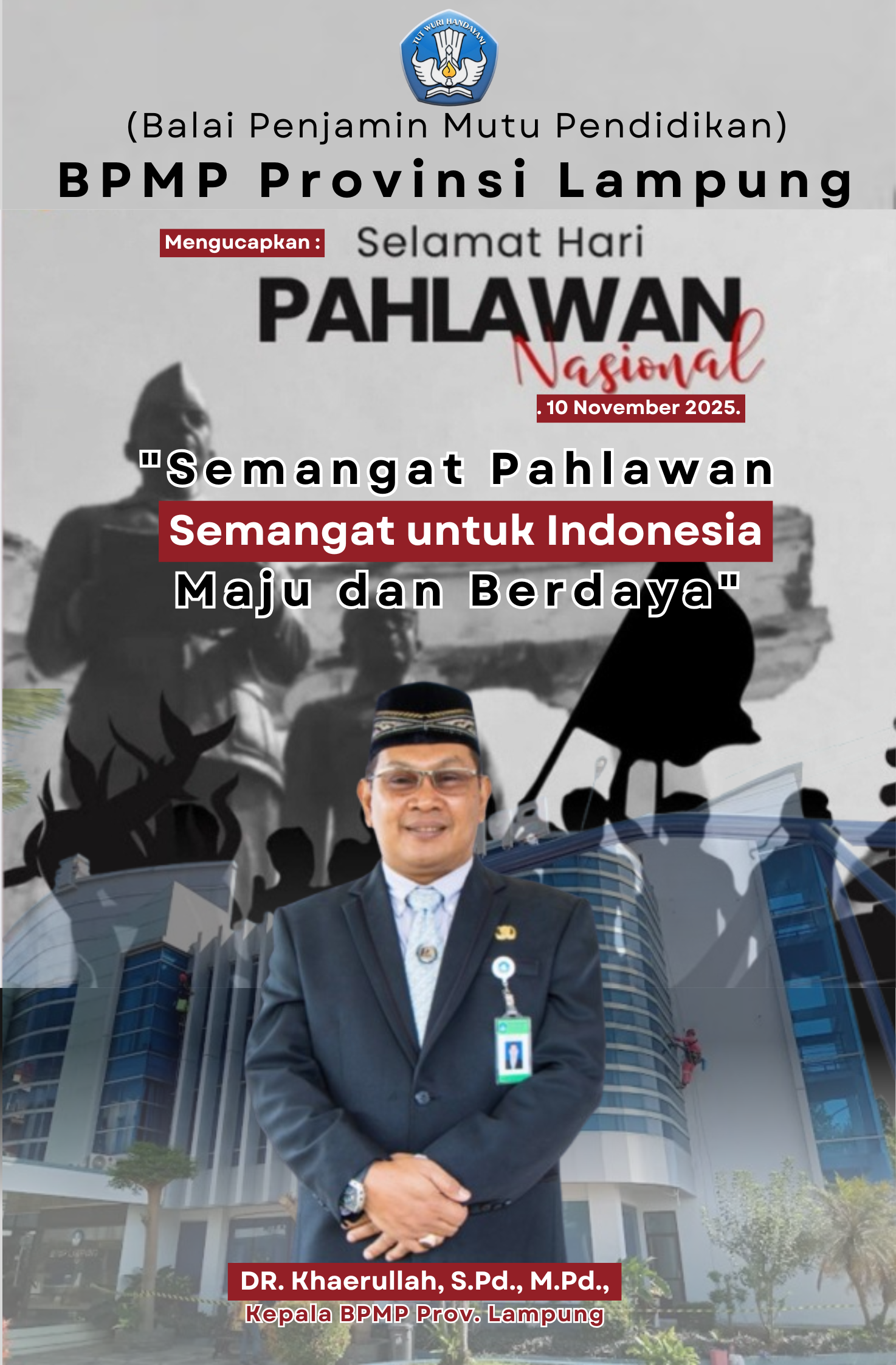 Bandarlampung, akbar.news — Kepala Balai Penjamin Mutu Pendidikan (BPMP) provinsi Lampung mengucapkan : Selamat Hari Pahlawan 10 November 2025.