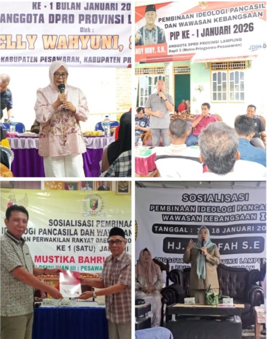DPRD Provinsi Lampung Dapil III (Pringsewu, Pesawaran, Metro) Gelar Sosialisasi Pembinaan Ideologi PancasilaBandar Lampung — DPRD Provinsi Lampung melaksanakan kegiatan Sosialisasi Pembinaan Ideologi Pancasila pada 17–18 Januari 2026.