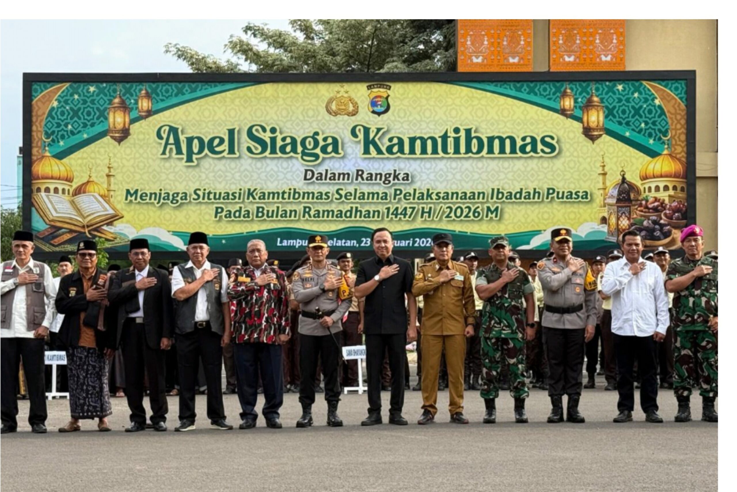 Apel Siaga dipimpin oleh Kapolda Lampung dan diikuti oleh peserta dari berbagai instansi sebagai wujud komitmen bersama dalam memberikan rasa aman dan nyaman kepada masyarakat selama Ramadan 1447 H. (Adm)