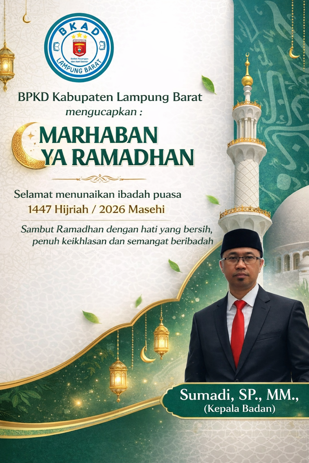 Liwa : BPKD Kabupaten Lampung Barat mengucapkan : Marhaban Ya Ramadhan, selamat menunaikan ibadah puasa 1447 Hijriah / 2026 Masehi