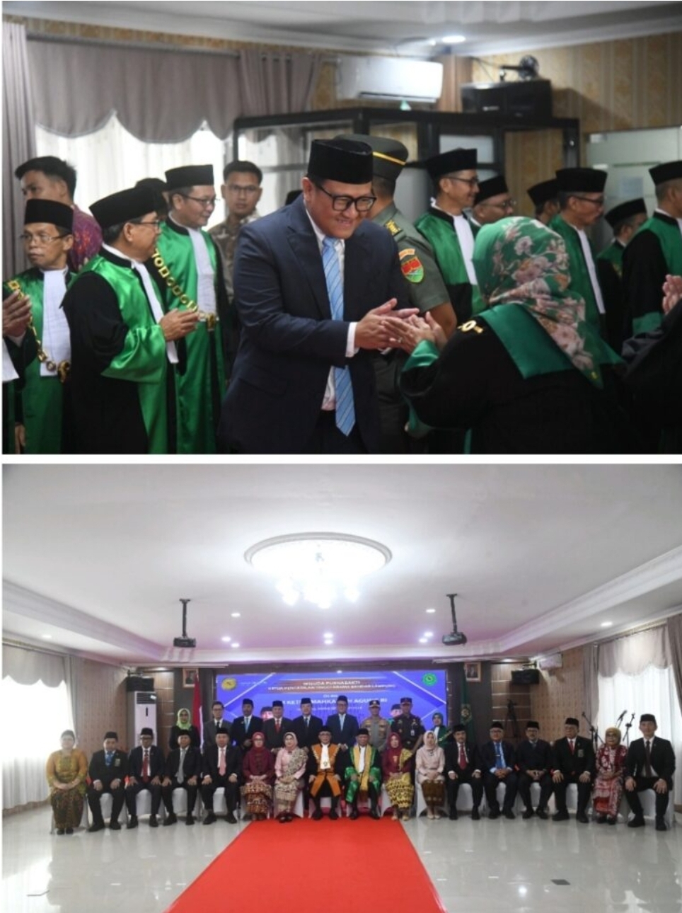 Prosesi purna bhakti Ketua PTA Bandar Lampung dipimpin langsung Ketua Mahkamah Agung RI Prof. Dr. Sunarto, S.H., M.H dan turut dihadiri oleh jajaran pimpinan lembaga peradilan, unsur Forum Koordinasi Pimpinan Daerah (Forkopimda), pejabat instansi vertikal, serta para tamu undangan lainnya.