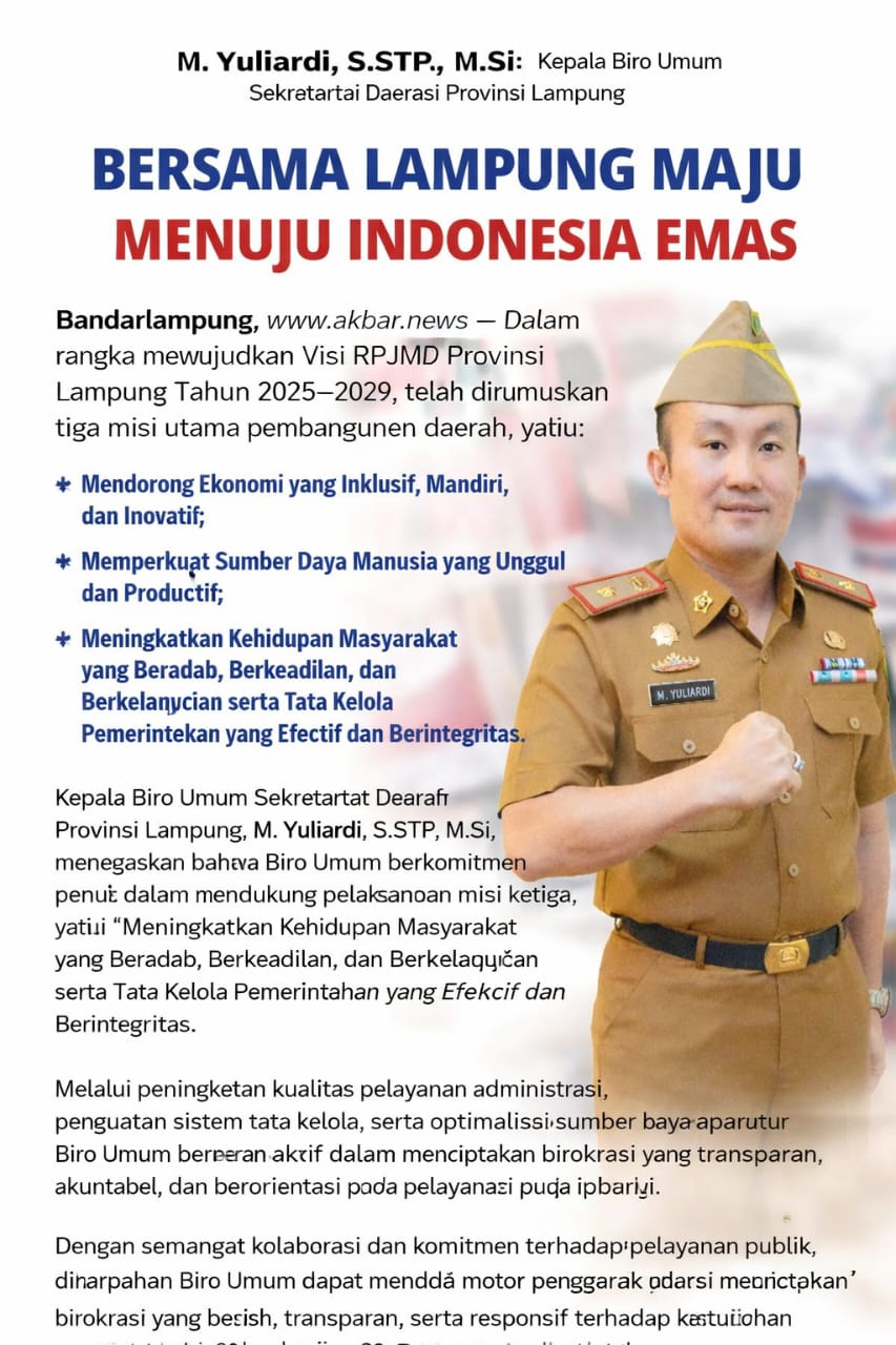 Dengan kerja keras, inovasi, dan dedikasi seluruh aparatur, Provinsi Lampung diharapkan mampu menjadi daerah yang maju, berdaya saing, dan memberikan kontribusi nyata bagi terwujudnya Indonesia Emas 2045. (Red)