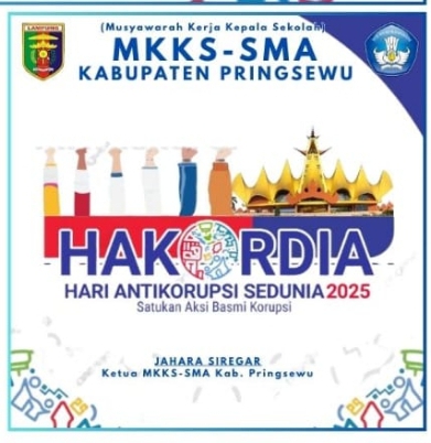 Pringsewu, — Seluruh Jajaran MKKS-SMA Kabupaten Pringsewu mengucapkan : ” Selamat Memperingati Hari Anti Korupsi Sedunia (HAKORDIA) 09 Desember 2025,” — Satukan Jiwa – Basmi Korupsi —