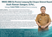 Bandar Lampung, akbar.news — Seluruh jajaran Musyawarah Kerja Kepala Sekolah (MKKS) SMA Provinsi Lampung menyampaikan ucapan selamat dan sukses atas dilantiknya Bapak Azah Rawan Sangun, S.Psi. sebagai Kepala Bidang Pendidikan SMA (Kabid PSMA) Dinas Pendidikan dan Kebudayaan Provinsi Lampung.