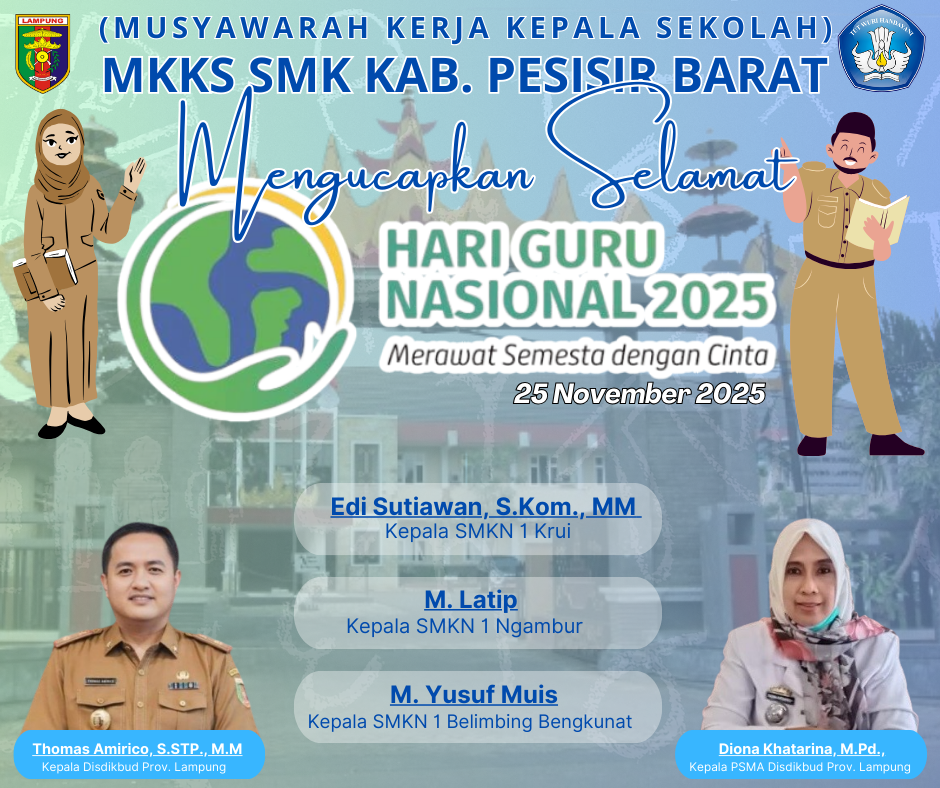 Seluruh jajaran MKKS-SMK Kabupaten Pesisir Barat Mengucapkan : Selamat Memperingati Hari Guru Nasional 25 November 2025 – “Merawat Semesta Dengan Cinta”