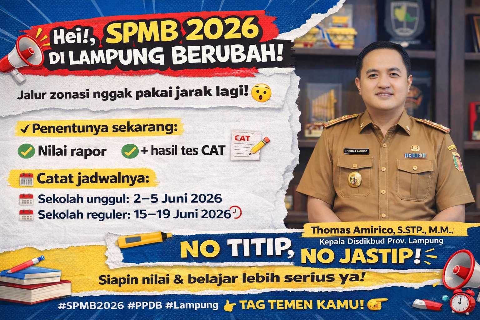 Melalui sistem baru ini, Pemerintah Provinsi Lampung berharap proses SPMB 2026 dapat berjalan lebih adil, transparan, dan mampu meningkatkan kualitas pendidikan di daerah. (Rls)