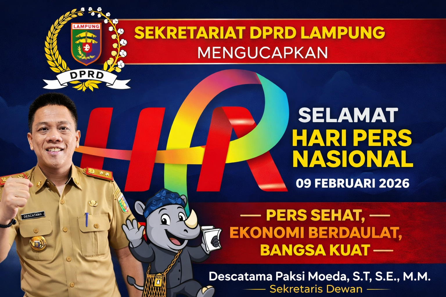 Bandar Lampung Akbar.news — Sekretariat DPRD Provinsi Lampung menyampaikan ucapan Selamat Hari Pers Nasional (HPN) Tahun 2026 yang diperingati pada 9 Februari 2026, dengan mengusung tema nasional “Pers Sehat, Ekonomi Berdaulat, Bangsa Kuat.”