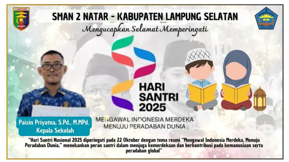 Lampung Selatan — Keluarga besar SMAN 2 Natar, kabupaten Lampung selatan mengucapkan : Selamat Hari Santri Nasional 22 Oktober 2025.