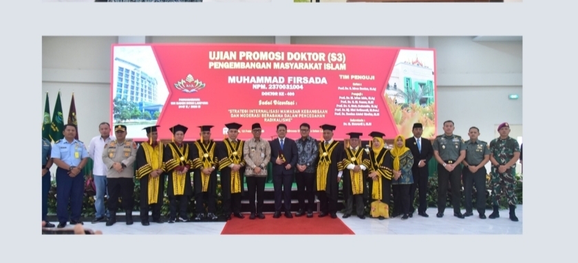 Disertasinya sangat relevan karena membahas moderasi beragama dan pencegahan radikalisasi serta terorisme. Mudah-mudahan kajian ini dapat menjadi referensi yang mendorong upaya bersama dalam menekan penyebaran radikalisme dan terorisme di Provinsi Lampung,” ujar Giri Akbar.